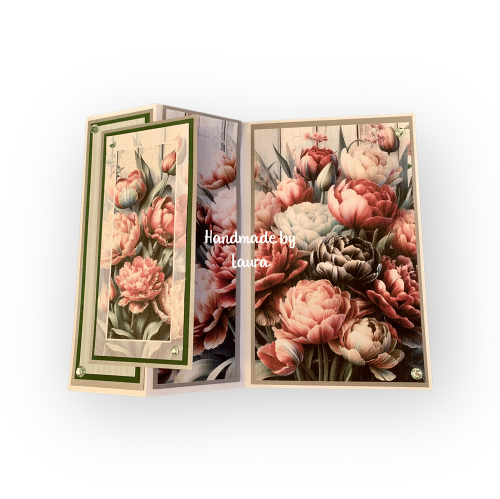 Handmade Z-fold card using the papers and panel from the Timeless Tulips Vintage Blooms kit - https://shop.obyd.co.uk/b/baBpn