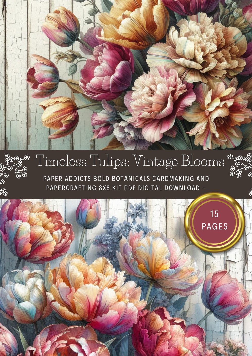 Introducing the Paper Addicts Bold Botanicals Cardmaking and Papercrafting 8x8 Kit PDF Digital Download - Timeless Tulips Vintage Blooms - 15 Pages
